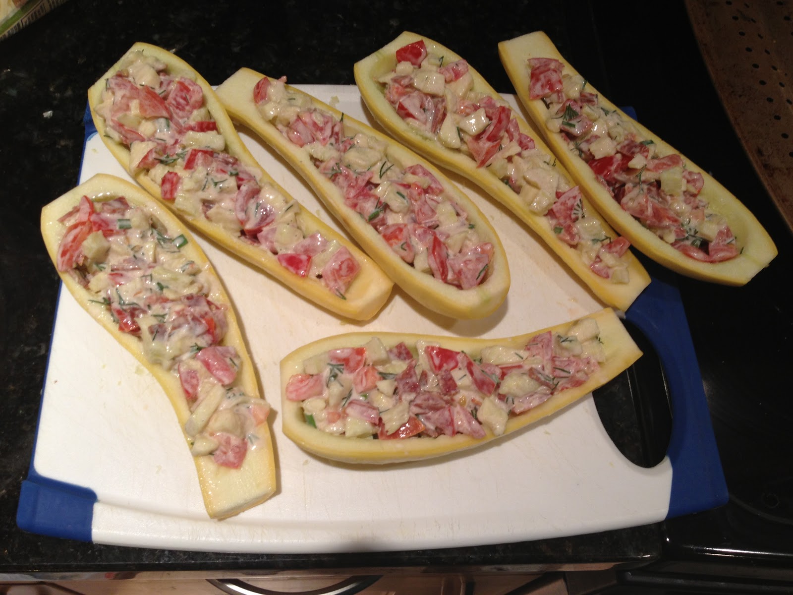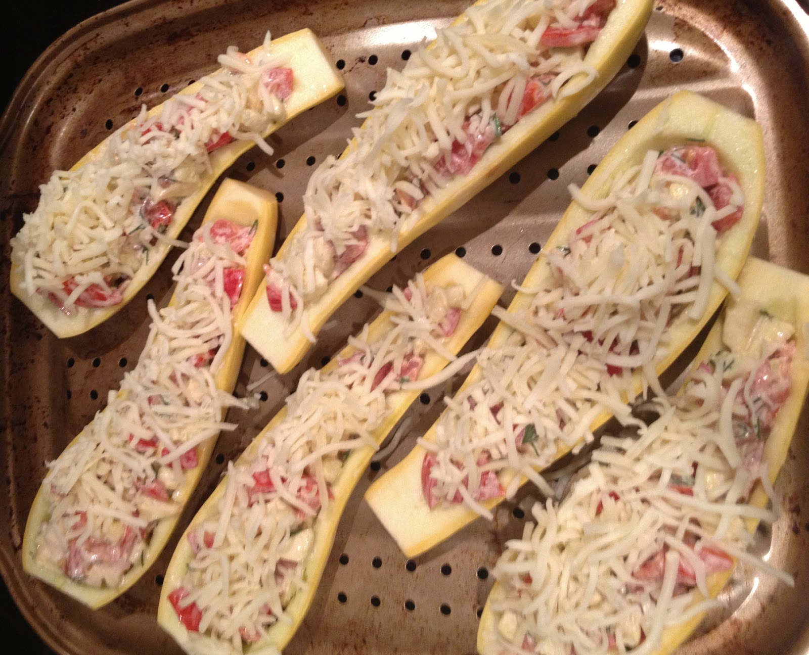 - Fill the squash halves with this mixture and top with shredded cheese (I used mozzarella, but anything from cheddar to american will work).