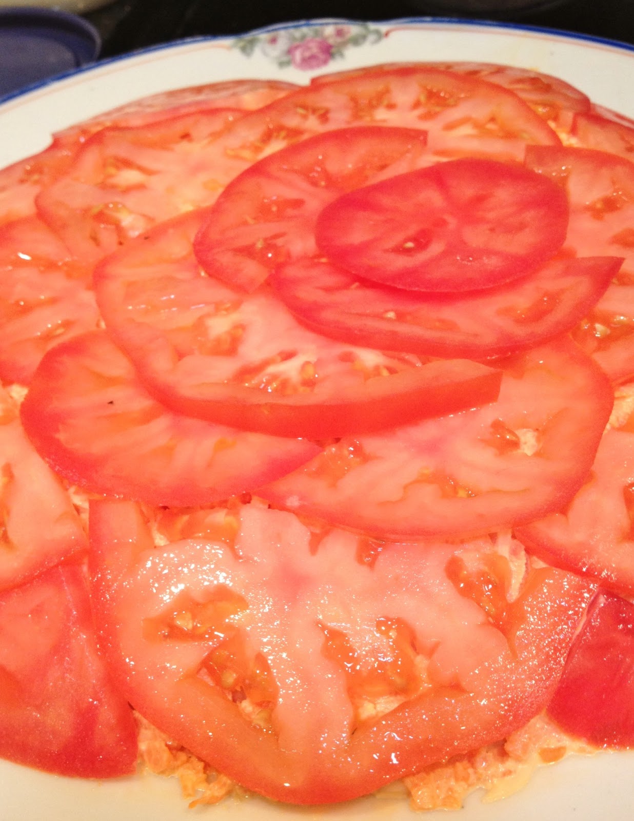 - Spread the remaining mayonnaise (about 1-2 tbsp) on top of the tomatoes.